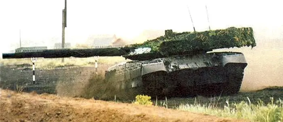 Běžící model tanku Black Eagle, vyrobený na podvozku T-80U se šesti silničními koly na palubě. Představeno v roce 1997.