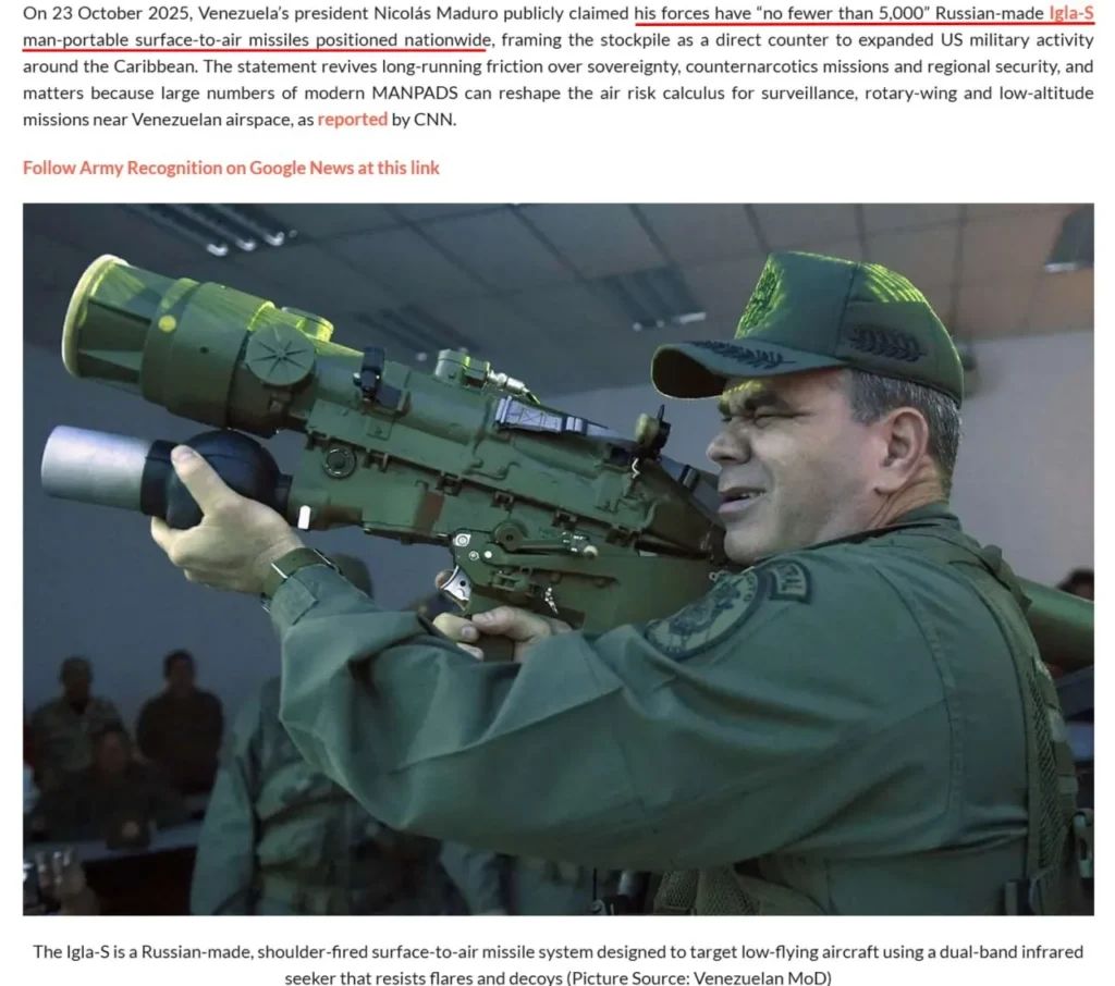 Připomeňme si, že Venezuela údajně měla tisíce ruských přenosných systémů protivzdušné obrany, ale ani jeden nebyl odpálen proti záplavě amerických vrtulníků, které bez námahy přelétaly nad hlavním městem: